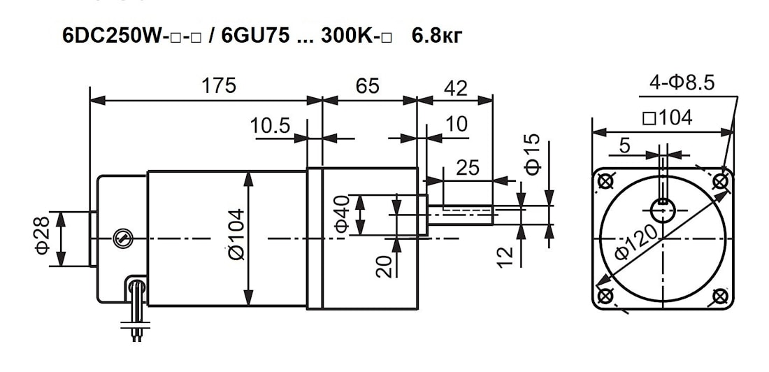 DC мотор-редуктор 6DC250W / 6GU75 … 300K Номинальная мощность – 0.25 кВт Выходные обороты: 6.0 об/мин ... 30 об/мин