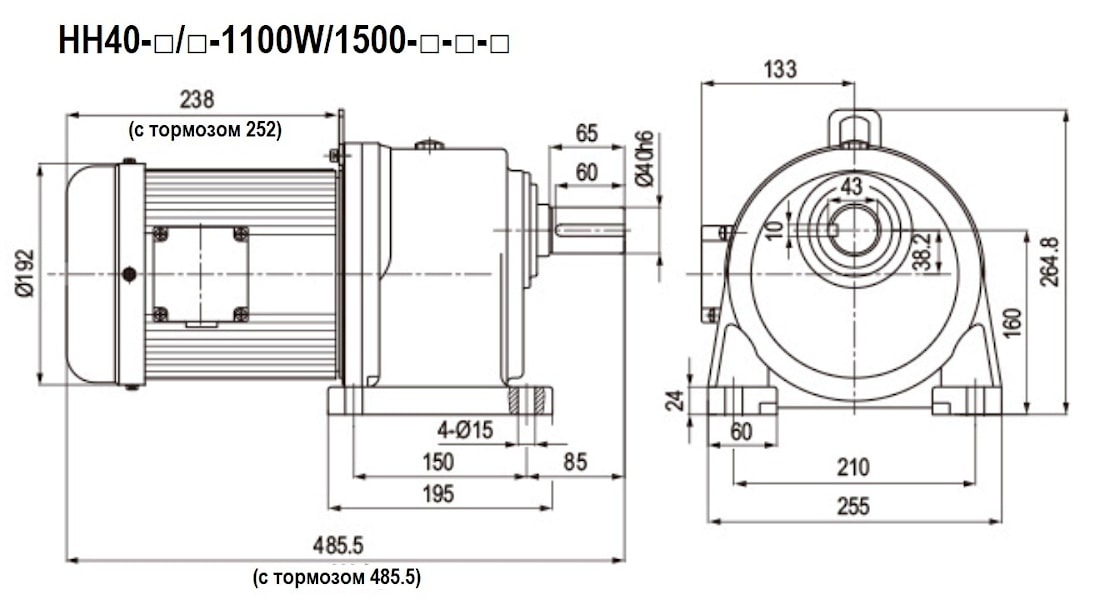 | Соосный мини мотор-редуктор НV40 (фланцевое исполнение) | |