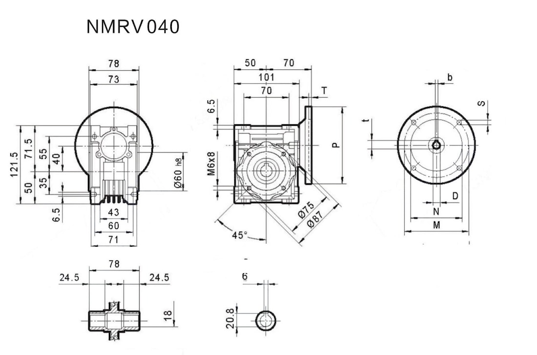 Одноступенчатый червячный мотор-редуктор NMRV040 - универсальный общепромышленный механизированный электропривод, служащий для привлечения крутящего момента на выходной вал редуктора. Исполнительный вал: полая втулка (в стандарте), цельный вал (по запросу), реактивная штанга (противовибрационное крепление).
