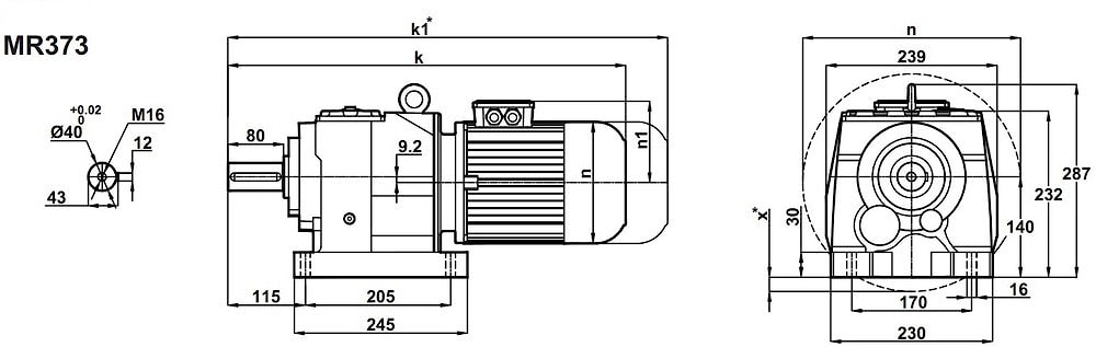 Соосный цилиндрический мотор-редуктор MR373-71/4b (исполнение на лапах) NR373-71/4b (фланцевое исполнение) MR373-80/6a (исполнение на лапах)NR373-80/6a (фланцевое исполнение) цилиндрический передаточный узел работает от электродвигателя мощностью 0,37 кВт. Полезная выходная частота вращений выходного вала для данного габарита 5,0 об/мин ~ 15,0 об/мин (увязанному с оптимальным сервис-фактором).