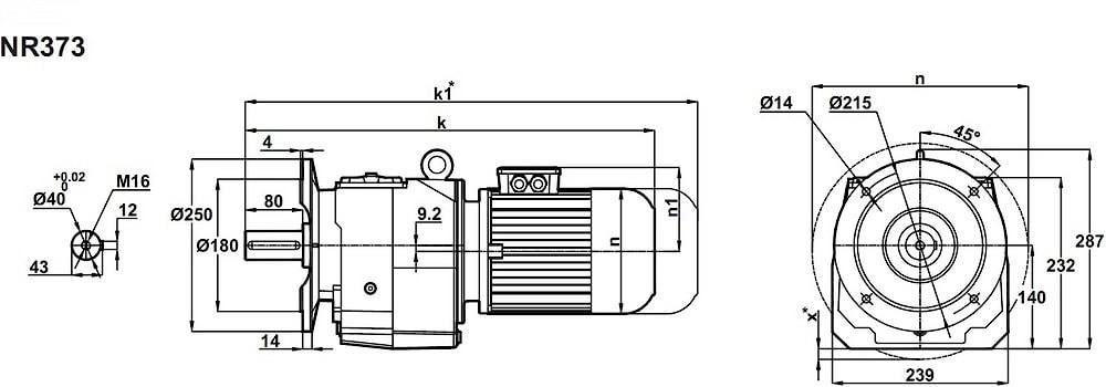 Соосный цилиндрический редуктор MR373 NR373 Номинальная мощность - 0,37 кВт Выходные обороты: 5,5 об/мин ... 13 об/мин