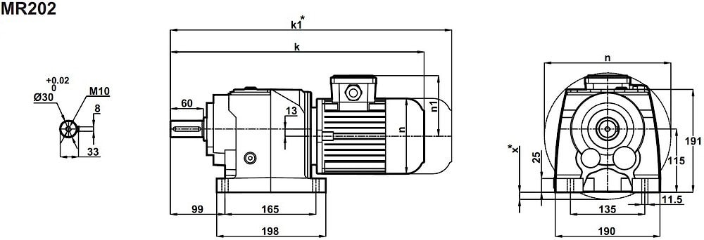 Соосный цилиндрический редуктор MR202, NR202 Номинальная мощность - 2,2 кВт Выходные обороты: 80 об/мин ... 400 об/мин