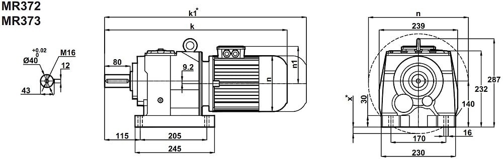 Соосный цилиндрический редуктор MR372, MR373, NR372 и NR373 Номинальная мощность - 4,0 кВт Выходные обороты: 40 об/мин ... 200 об/мин