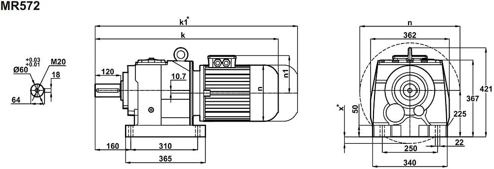 Соосно-цилиндрический мотор-редуктор MR572-180M/4 (исполнение на лапах), NR572-180M/4 (фланцевое исполнение)представляет собой механизм по преобразованию энергии, заключенной в высокой угловой скорости, передаваемой от асинхронного электрического двигателя мощностью 18,5KW, на исполнительный вал узла; при этом рабочие передаточные отношения для данного габарита следует выбирать в диапазоне i=4,0 ... i=14.Отмечаем, прочный, литой, чугунный корпус моноблочного типа - преимущество которое Вы почувствуете в долгосрочной перспективе.