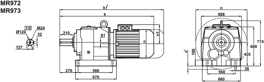 Соосный цилиндрический редуктор MR973 и NR973 20 об/мин ... 80 об/мин
