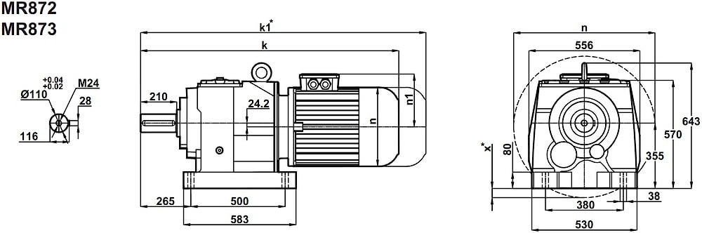 Соосный цилиндрический редуктор MR872, MR873, NR872, NR873 30 об/мин ... 330 об/мин
