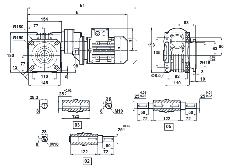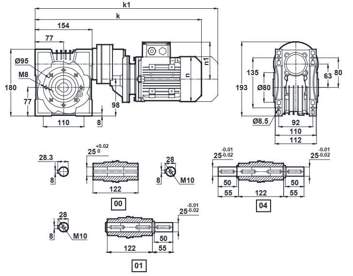 В редукторной части EV063-NR01 минимизированы все возможные эксплуатационные отклонения, оптимизированы допуски зубчатых передач. Цилиндрическая ступень повышает передаточное отношение в то же время снижает конечную частоту вращения выходного вала.