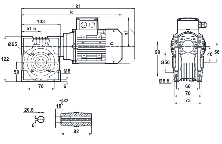 При этом крутящий момент на выходном валу составляет от 15 Nm до 30 Nm (зависит от выбранного передаточного числа). Оптимальные передаточные числа для данного типоразмера i=15 ... i=40 (согласно нормативного сервис-фактор).