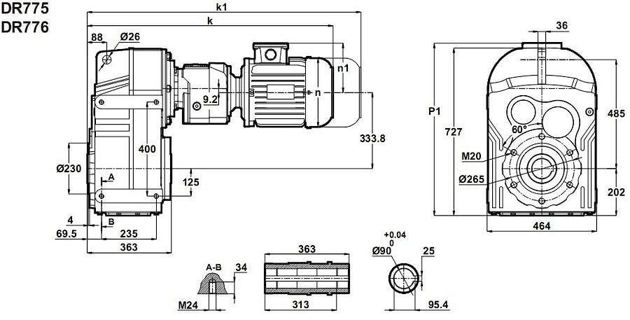 Цилиндрический редуктор DR775 и DR776 0,2 об/мин ... 1,0 об/мин
