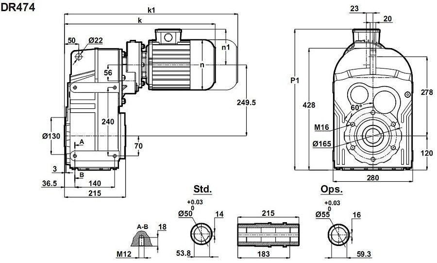 Мотор редуктор DR474 можно использовать как технический аналог мотор редуктору SK4282 / 12 / выпускаемых NORD , Германия ; мотор-редуктору F514 / производства Bonfiglioli , Италия.