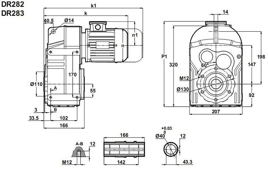 Мотор редуктор DR282 и DR283 можно использовать как технический аналог мотор редукторов F312 и F313 , F 312 и F 31 3 , F3 1 2 и F31 3 (выпускаемых Bonfiglioli /Италия).