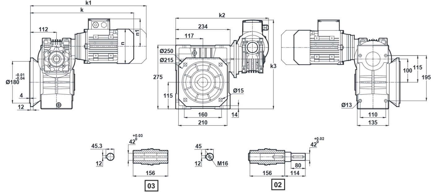 Червячный редуктор EV100-E050 Номинальная мощность - 0,37 кВт Выходные обороты: 2,5 об/мин ... 8,0 об/мин