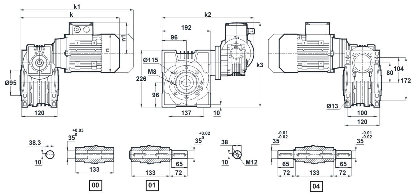 Червячный редуктор EV080-E040 Номинальная мощность - 0,37 кВт Выходные обороты: 4,5 об/мин ... 8,0 об/мин