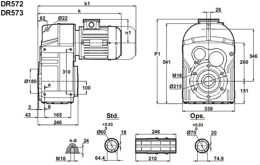 Универсальный промышленный привод DR572-132M/4 и DR573-132M/4 - мотор-редуктор с параллельными осями (торцевой мотор-редуктор, мотор-редуктор насадного типа, вертикальные цилиндрические мотор-редуктор, мотор-редуктор с полой втулкой и т.д.)Электрический мотор - номинальной мощностью 7,5 KW