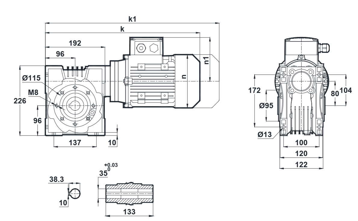 Червячный мотор-редуктор EV080 - можно рассматривать как: полный аналог червячных редукторов брэндов Motovario (Италия) , Transtecno (Италия) , Innovari (Италия) , Siti (Италия) , STM Spa (Италия) , PGR (Турция) , Tramec (Италия), а также моделей NMRV и RV (многочисленных китайских производителей).