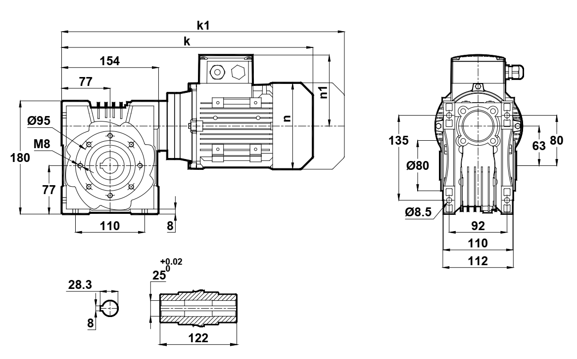 Червячный мотор-редуктор EV063 - можно рассматривать как: полный аналог червячных редукторов брэндов Motovario (Италия) , Transtecno (Италия) , Innovari (Италия) , Siti (Италия) , STM Spa (Италия) , PGR (Турция) , Tramec (Италия), а также моделей NMRV и RV (многочисленных китайских производителей).