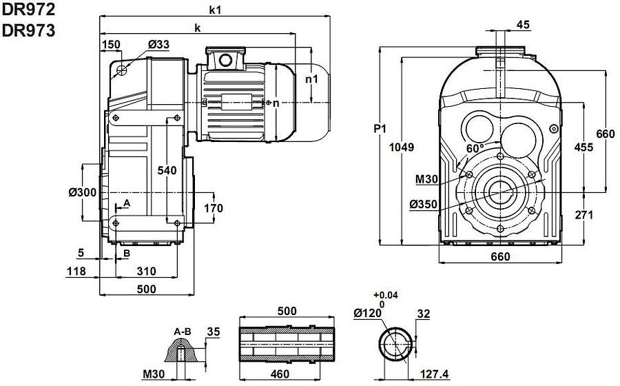 Цилиндрический редуктор DR972 и DR973 30 об/мин ... 120 об/мин