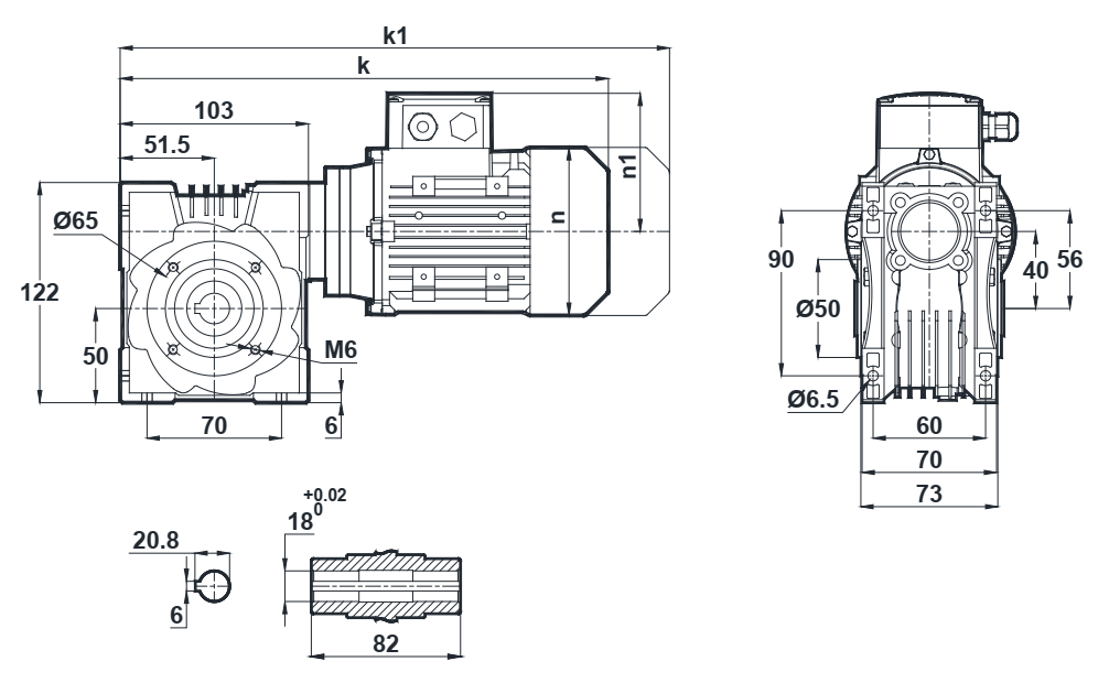 Червячный редуктор EV040-71/4b в сборе с электродвигателем 0,37 кВт. представляет собой мотор-редуктор с выходными оборотами 70 об/мин ~ 200 об/мин (согласно оптимального сервис-фактора).