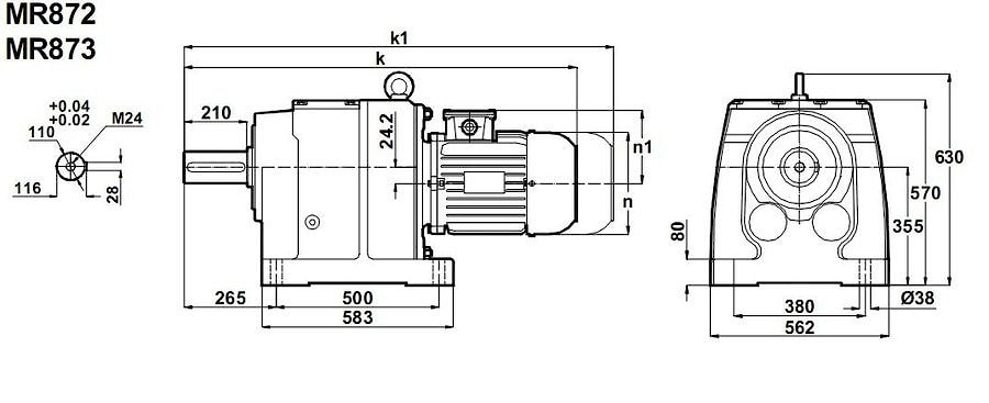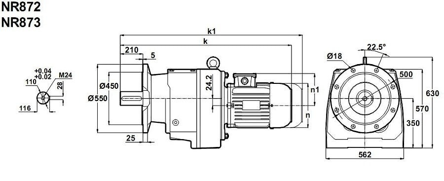 Соосный цилиндрический редуктор MR872, MR873, NR872, NR873 40 об/мин … 320 об/мин