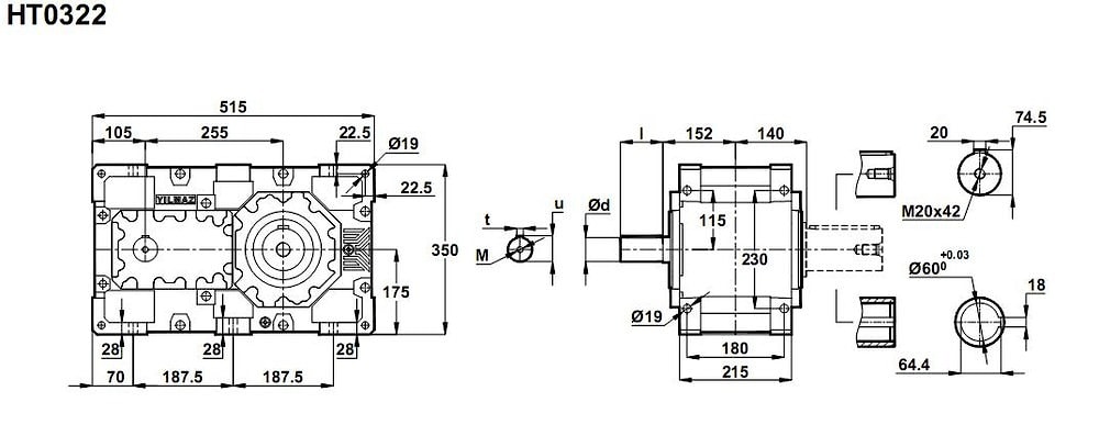 Двухступенчатый редуктор - HT0322 i = 5 ... 20