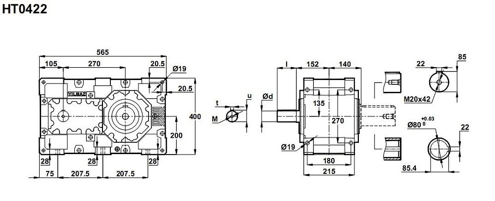 Двухступенчатый редуктор - HT0422 i = 6 ... 22