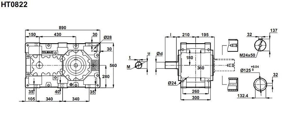Двухступенчатый редуктор - HT0822 i = 7 ... 25