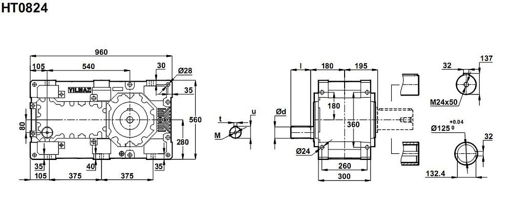 Четырехступенчатый редуктор - HT0824 i = 87 ... 320