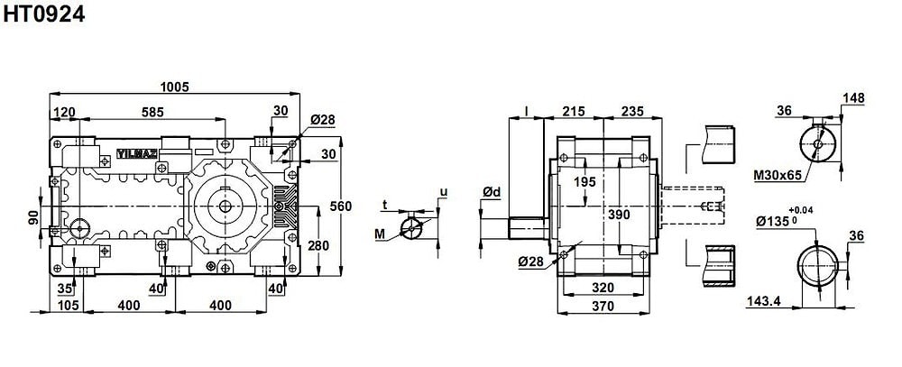 Трансмиссионный четырех ступенчатый редуктор HT 0924 - мощная зубчатая передача с установленным номинальным крутящим моментом - 29 кНм , передаточные числа i=100/1 ~ i=330/1 .В соответствии с технической документацией привода подключаемая мощность: 13 KW ~ 46 KW, если входная скорость 1500 об/мин ; 8,5 KW ~ 29 KW, если входная скорость 1000 об/мин ; 7,1 KW ~ 25 KW, если входная скорость 750 об/мин ; 4,3 KW ~ 15 KW, если входная скорость 500 об/мин ; 2,9 KW ~ 10 KW, если входная скорость 300 об/мин. Подключаемая мощность напрямую зависит от систем охлаждения, типу, подводу смазочных материалов и т.д.