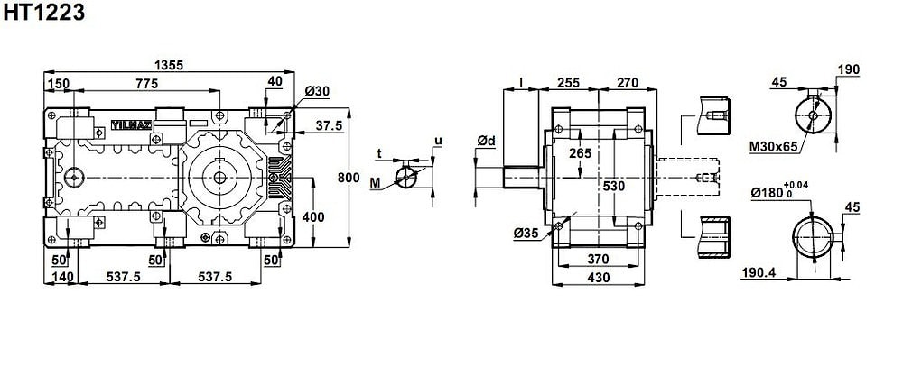Трехступенчатый редуктор - HT1223 i = 31 ... 95