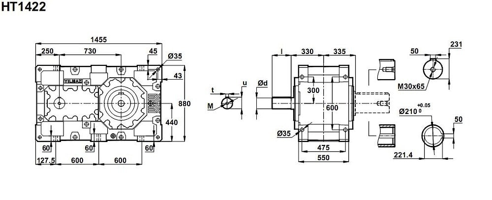 Двухступенчатый редуктор - HT1422 i = 8 ... 25