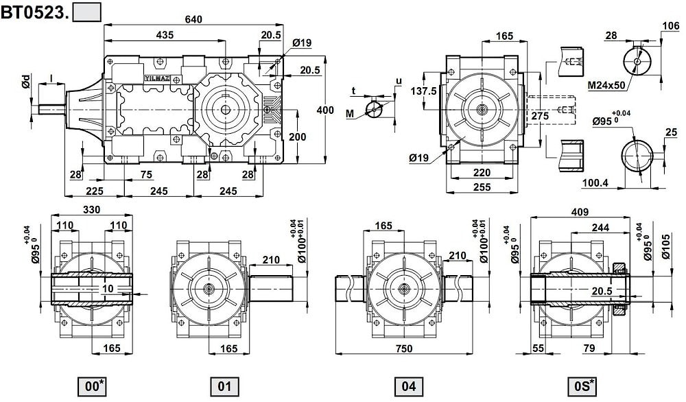 Силовой узел по передаче крутящего момента в промышленных условиях BT 0523 , номинальная установленная мощность - 8,5kNm , допустимые радиальные нагрузки на входные валы - 12 кН, на выходные - 47 кН.Подключаемая мощность составляет (без учета систем охлаждения и дополнительной смазки): на скоростях 1500 об/мин 17 кВт - 70 кВт ; на скоростях 1000 об/мин 11 кВт - 46 кВт ; на скоростях 450 об/мин 6,0 кВт - 23 кВт ; на скоростях 300 об/мин 4,1 кВт - 16 кВт .