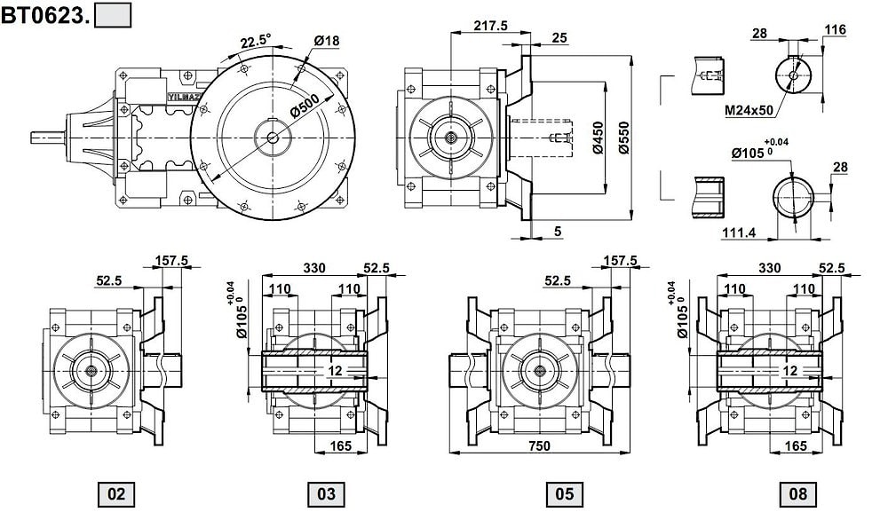 Трехступенчатый редуктор BT0523 i = 13 ... 70