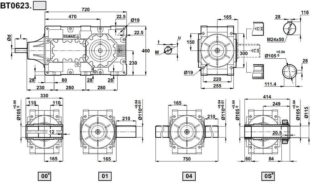 Трехступенчатый редуктор BT0623 i = 16 ... 86