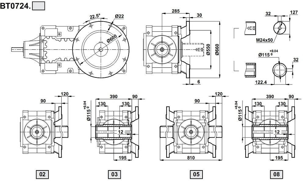 Четырехступенчатый редуктор BT0724 i = 60 ... 330