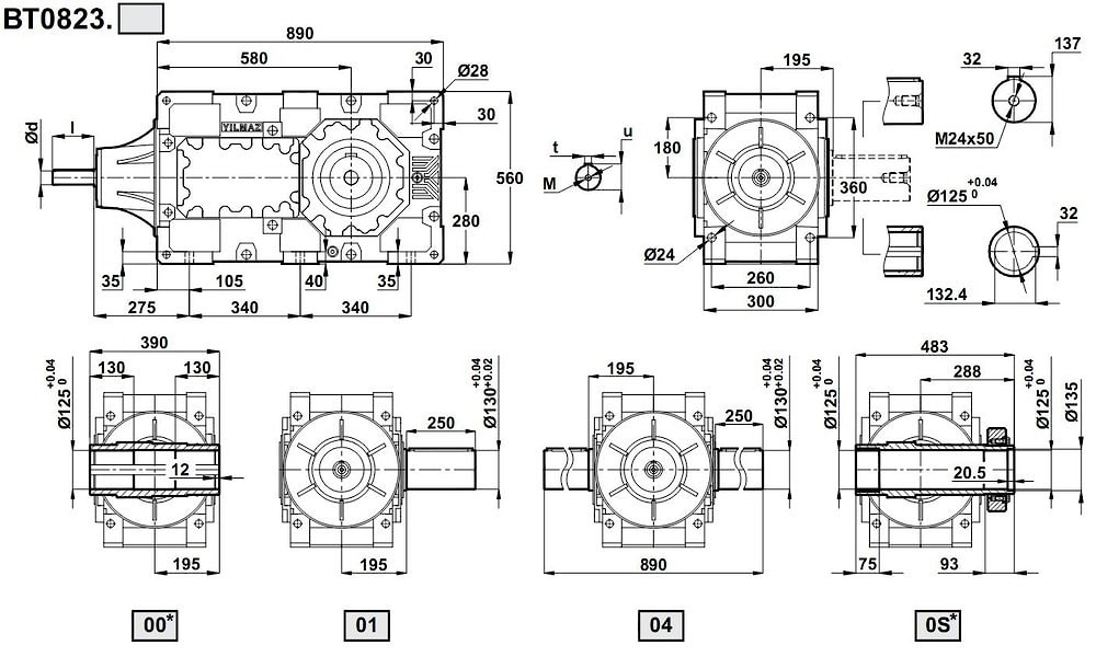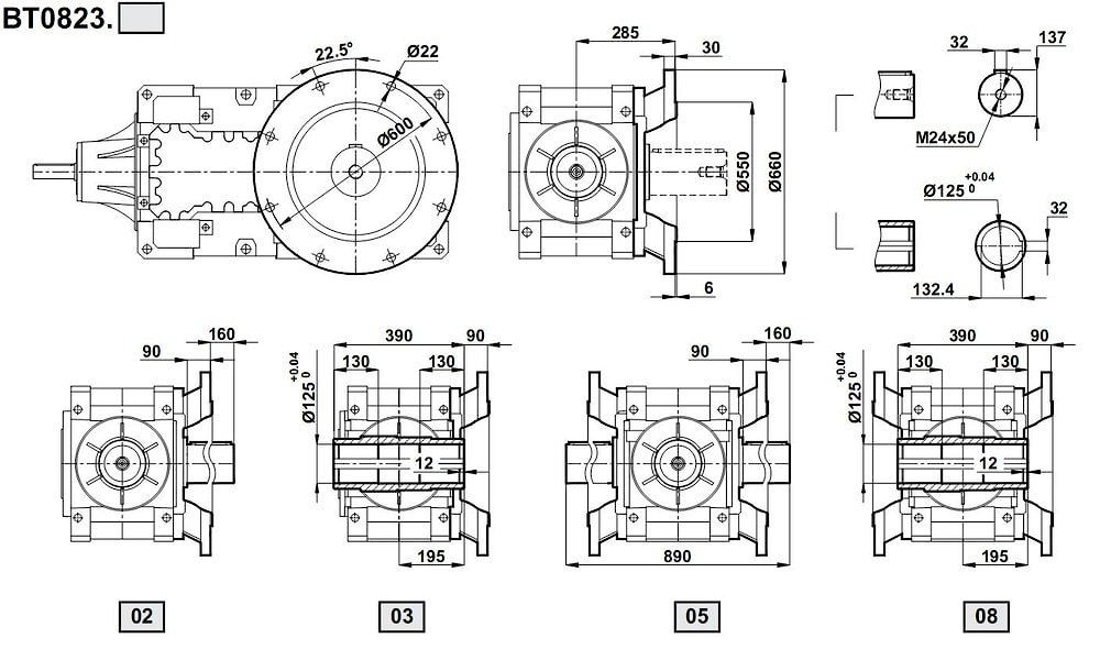 Трехступенчатый редуктор BT0823 i = 15 ... 75
