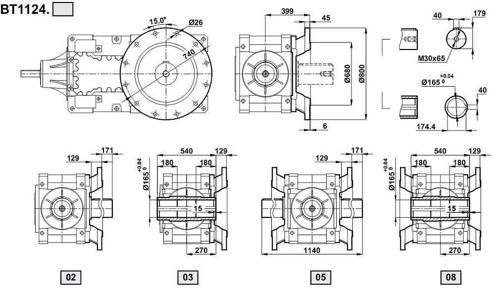 Четырехступенчатый редуктор BT1124 i = 63 ... 320