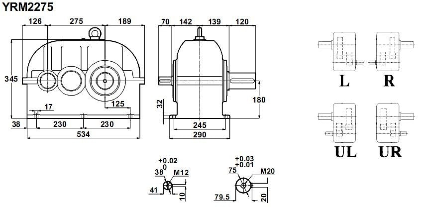 Двухступенчатый редуктор YRM2275 i = 7.0 ... 20