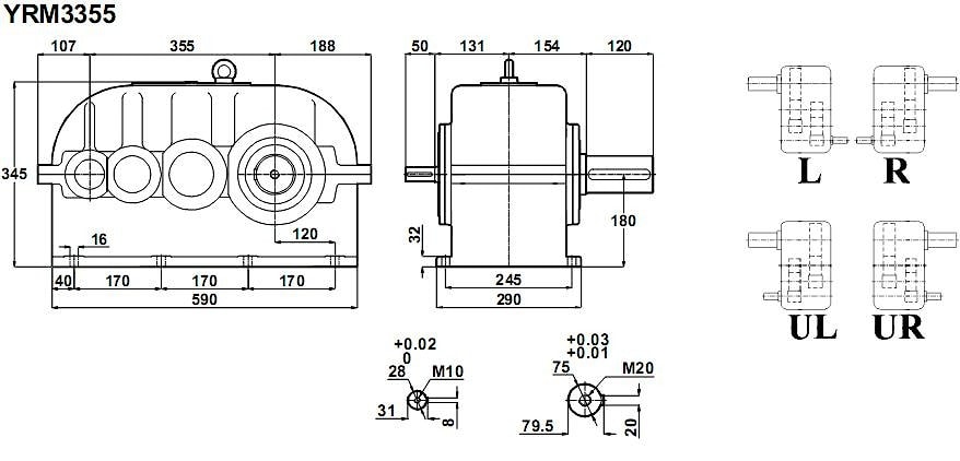 Трехступенчатый редуктор YRM3355 i = 22 ...101