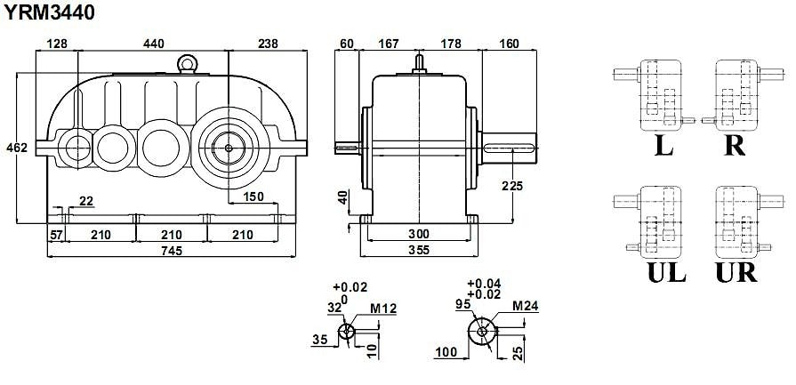 Трехступенчатый редуктор YRM3440 i = 23 ...100