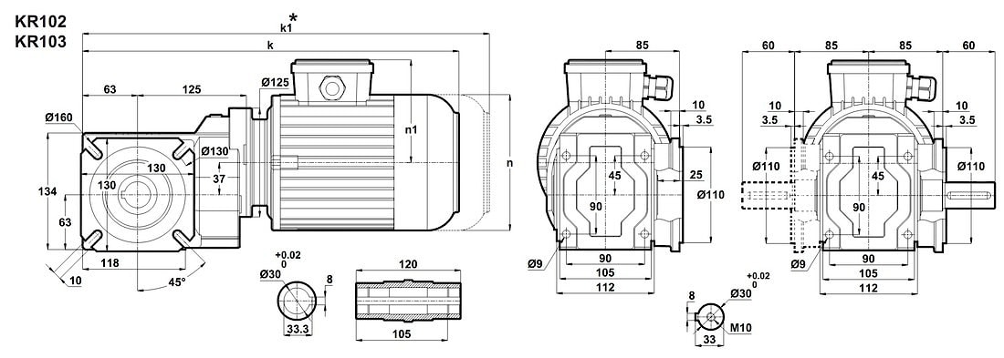 Конические редукторы KR102 и KR103 26 об/мин ... 161 об/мин
