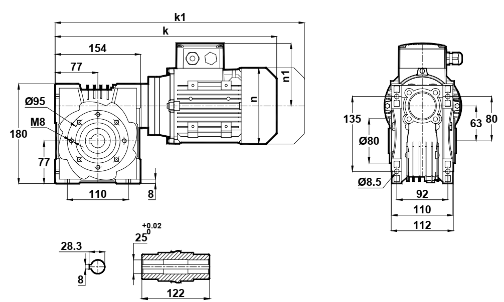 Червячный редуктор EV063 Номинальная мощность - 1,1 кВт Выходные обороты: 70 об/мин ... 200 об/мин