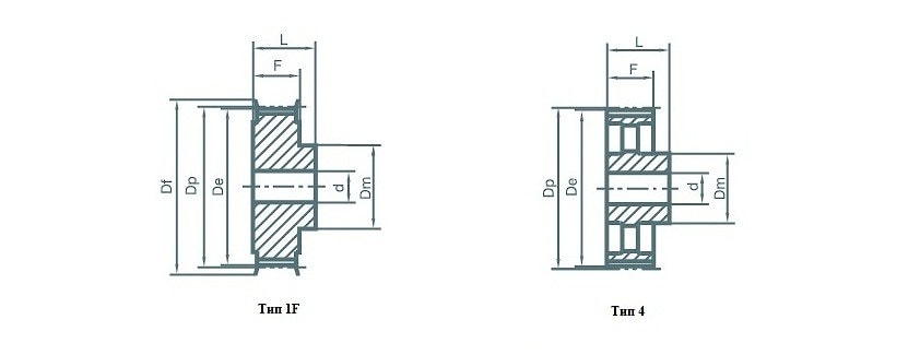 Зубчатые шкивы на базе зубчатой ременной передачи (трапециевидная форма зуба ремня)