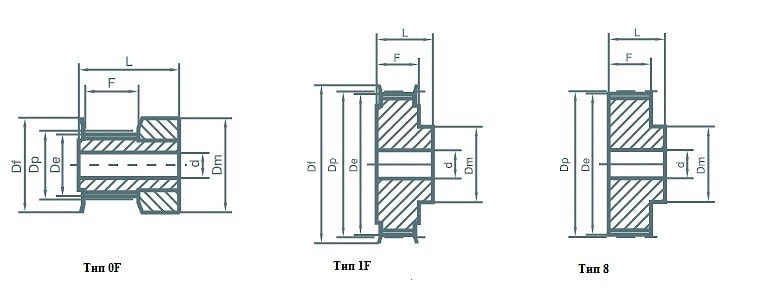 Зубчатые шкивы на базе зубчатой ременной передачи (округлая форма зуба ремня)