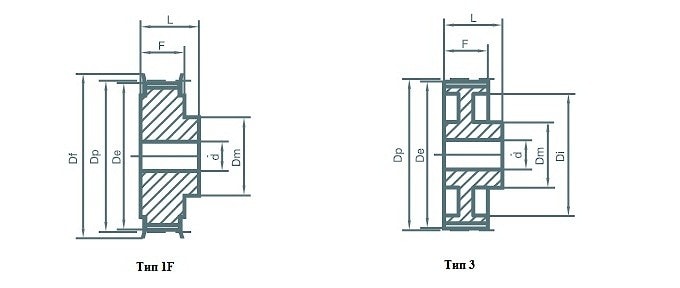 Зубчатые шкивы на базе зубчатой ременной передачи (округлая форма зуба ремня)