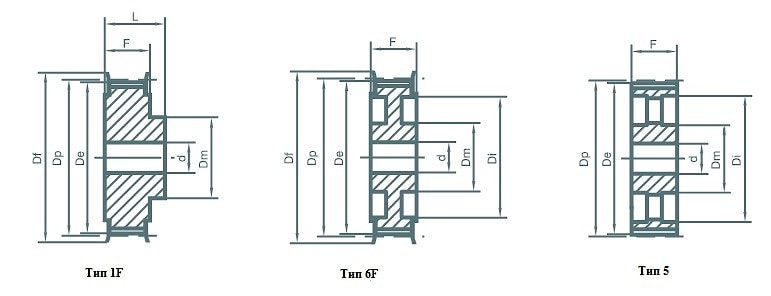 3) 1F - тип шкива;